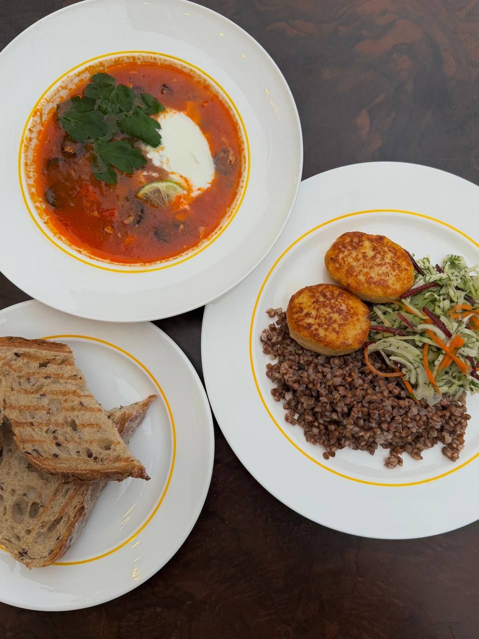 Курячі котлети з гречкою/ Курячий бульйон або Солянка/ Цитрусовий чай