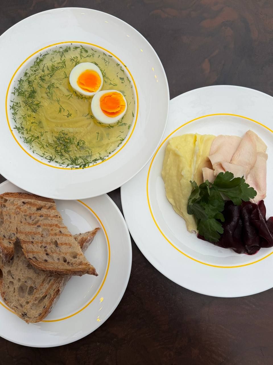 Курка су-від з пюре/ Курячий бульйон або Солянка/ Цитрусовий чай